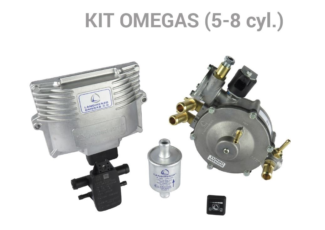 Landi Renzo Omegas 3.0 Li10M 200 KW -5/6/8 cilindros Fronkit para vehículos de 5-6-8 cilindros con un reductor Li10 OVERSIZE hasta 200 kW e inyectores GIRS12 Contenido: – Centralita Omegas 3.0 para 5-6-8 cilindros – Reductor Li10 OVERSIZE hasta 200 kW con válvula de cierre 6 mm integrada – Mazo de cables 5-6-8 cilindros (sin cables interruptores del inyector) – Sensor de presión – Inyectores GIRS 12 para 5-6-8 cilindros (opcional) – Filtro (opcional) – Interruptor – Tubería de gas – Mangueras de agua y gas – Bolsa con piezas pequeñas